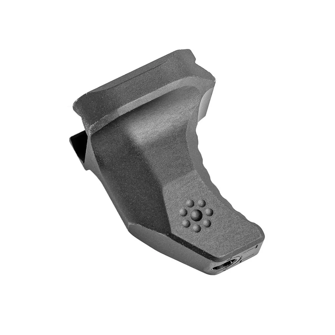- Функціональність: Основне призначення ручного упору — це допомога в стабілізації зброї та покращення контролю над нею під час стрільби. Упор дозволяє зручніше тримати зброю і запобігає ковзанню руки.