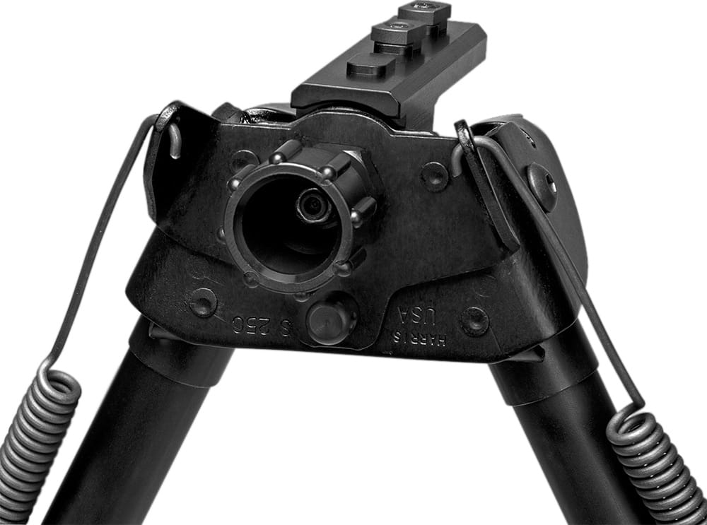 Сошки Harris відомі у всьому світі своєю простотою, надійністю та легкою вагою завдяки поєднанню загартованої сталі та легкого алюмінієвого сплаву. Сошки серії “S” оснащені шарнірною базою, яка усуває коливання при прицілюванні та забезпечує вирівнювання горизонту по осі карабіна для адаптації під нерівну поверхню.