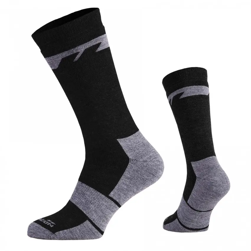 Шкарпетки зимові Pentagon із вовни Merino ідеально підходять для холодних днів, забезпечуючи тепло, комфорт і захист. Завдяки високоякісним матеріалам, таким як вовна Merino, вони мають антибактеріальні властивості, запобігають виникненню запахів і не викликають подразнень. Анатомічний дизайн та еластична проміжна підошва гарантують ідеальну посадку, а посилені п’ята і носок додають довговічності.
