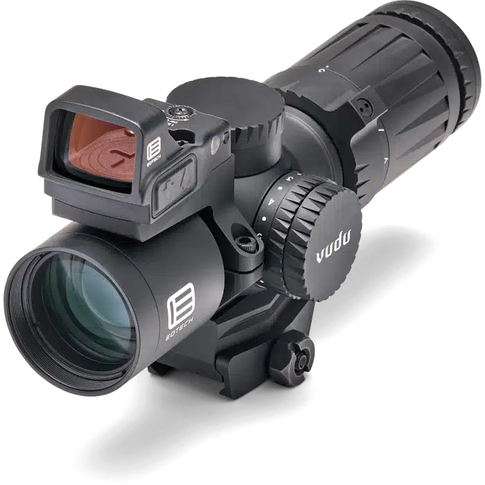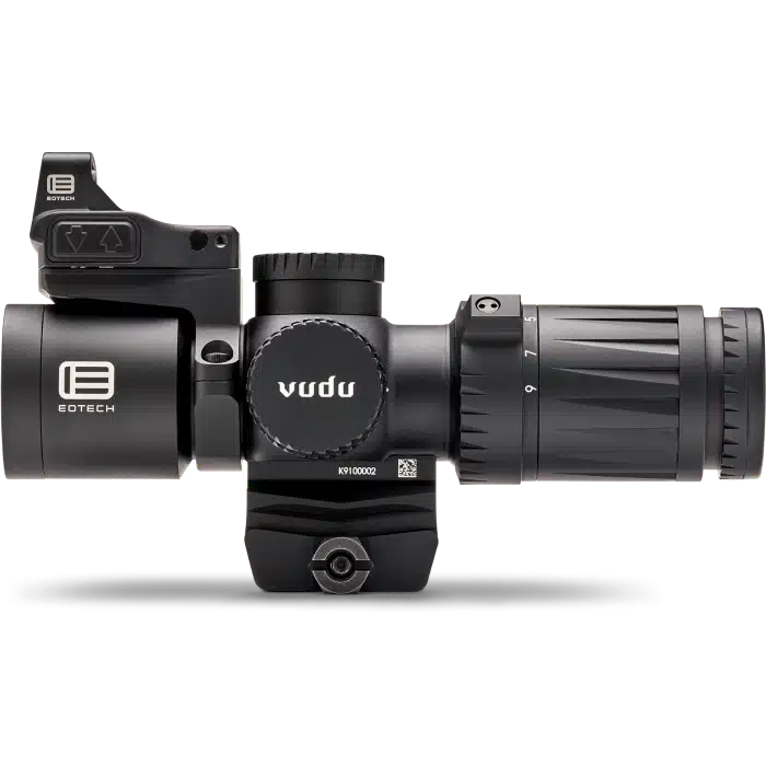 EOTECH Vudu 3-9×32 з EFLX — це інтелектуально сконструйоване рішення, яке поєднує точність змінного збільшення та швидкість реакції Red Dot-оптики в одному функціональному комплекті.