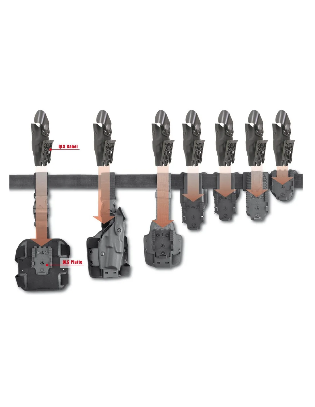 Ідеально підходить для правоохоронних органів, служб безпеки, військових та цивільних користувачів, які використовують тактичні підсумки або кобури і потребують швидкого та безпечного способу змінювати місце кріплення спорядження.