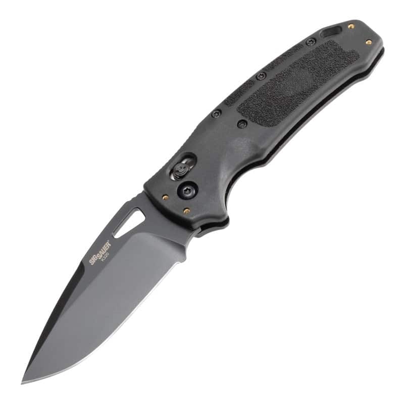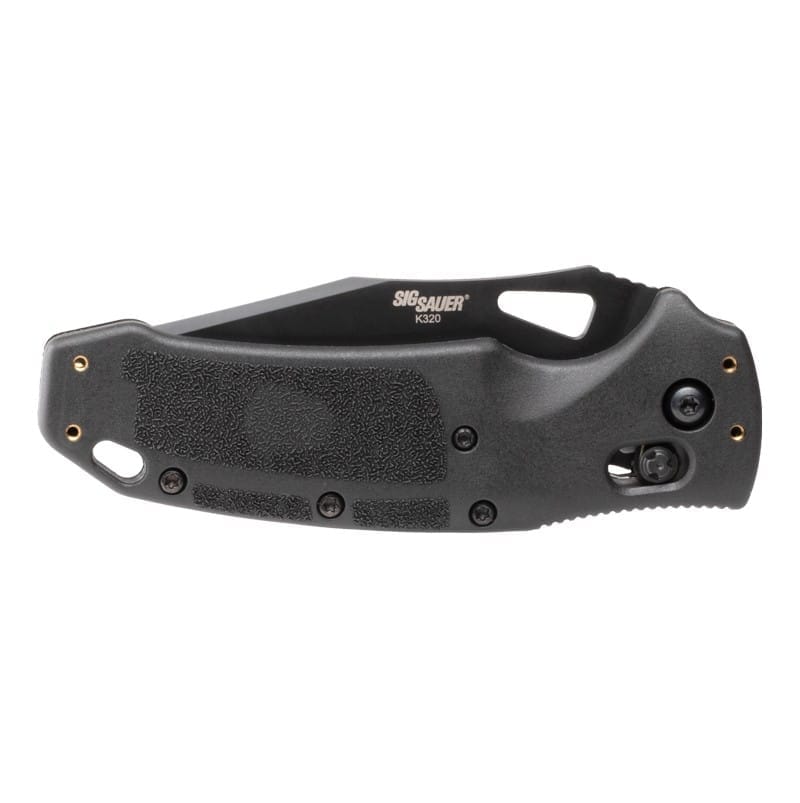 Ніж SIG Sauer K320 by Hogue – був розроблений у співпраці компанії Hogue та SIG Sauer і створений за зразком пістолетів P320 Nitron. Рукоятка виготовлена з нейлону 12 у чорному кольорі, посиленого скловолокном. Антиковзаюча текстура рукоятки, ідентична текстурі пістолетів P320, забезпечує надійний хват. Насічка на обусі клинка дозволяє великому пальцю надійно спиратися під час різання. Підходить для мисливства і не тільки.