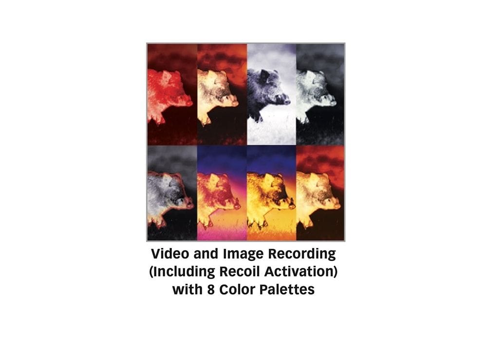 - Запис відео та зображень (включаючи активацію віддачі) з 8 кольоровими палітрами