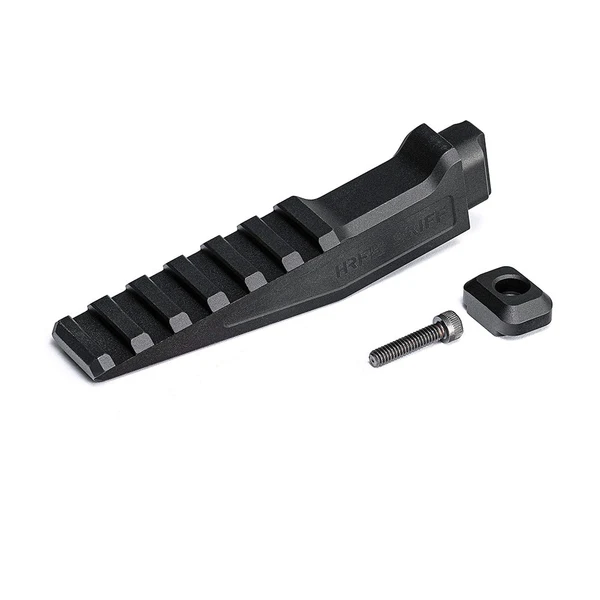 HRF Skiff — модульне рішення для підйому лазерів, що дозволяє змонтувати лазер без модифікацій руків’я на платформах з дулом 12,5″ та коротше. SKIFF оптимізує положення лазера для мінімізації «плеєра» освітлення та зручної роботи з pressure-pad і tape-switch без затемнення функцій лазера.